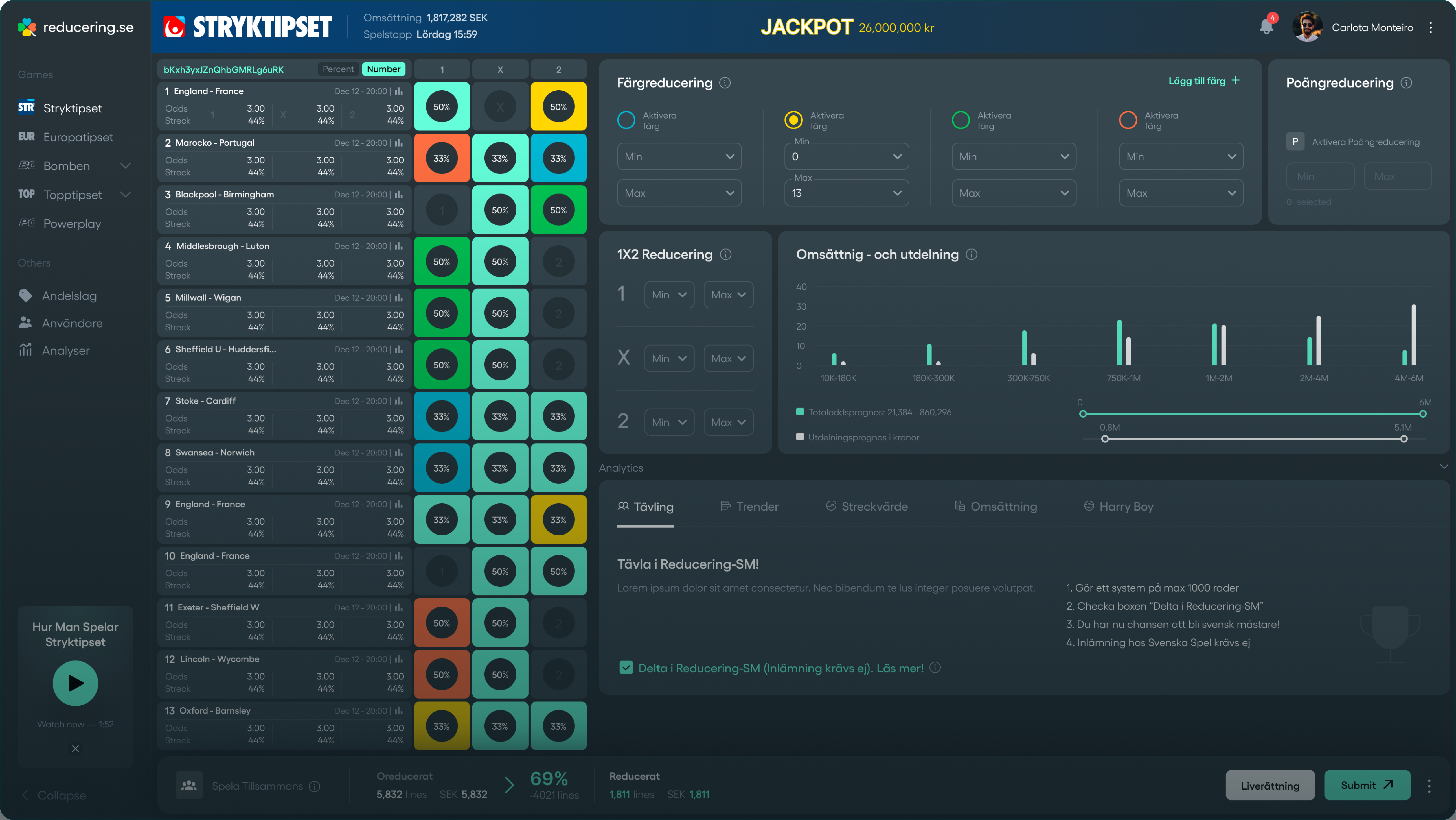 Spela smartare och bättre på Stryktipset med hjälp av Sveriges vassaste reduceringsverktyg, helt gratis att använda.