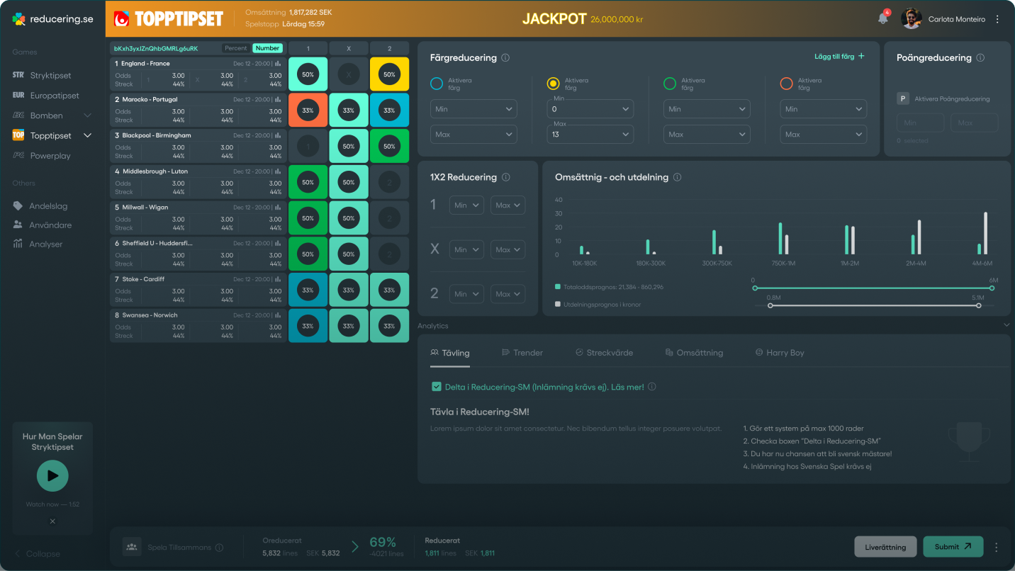 Spela reducerade rader på Topptipset idag med Sveriges vassaste reduceringsverktyg, helt kostnadsfritt!